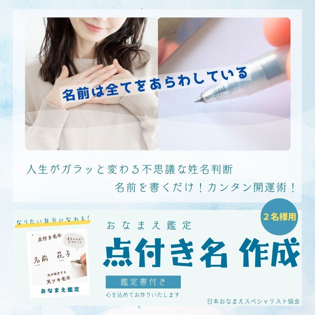 生まれた日や人相や手相は変えることはできませんが、名前に点をつけることは、今日からできます。